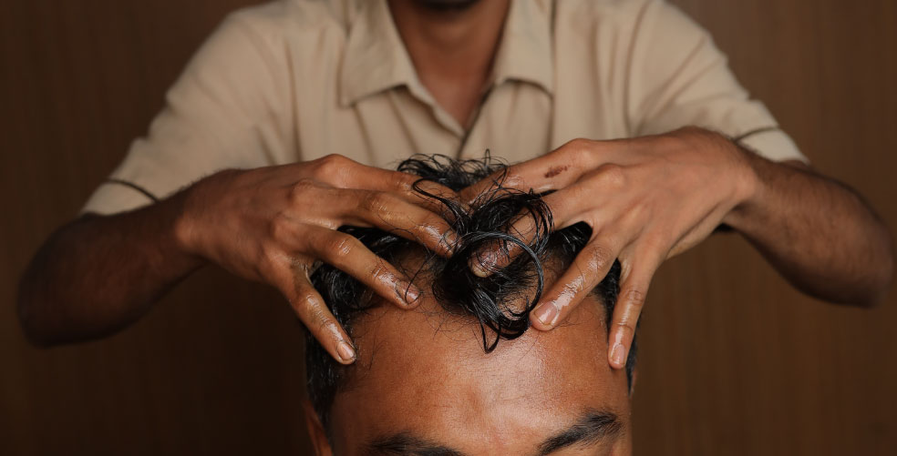 • Shiroabhyanga(Head Massage)- nourishes the scalp, increases blood flow and strengthens hair roots.